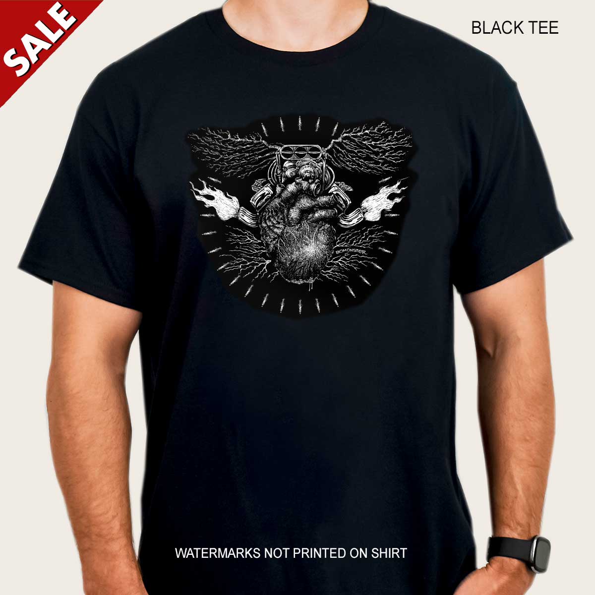 - Preshrunk men's heavyweight black tee