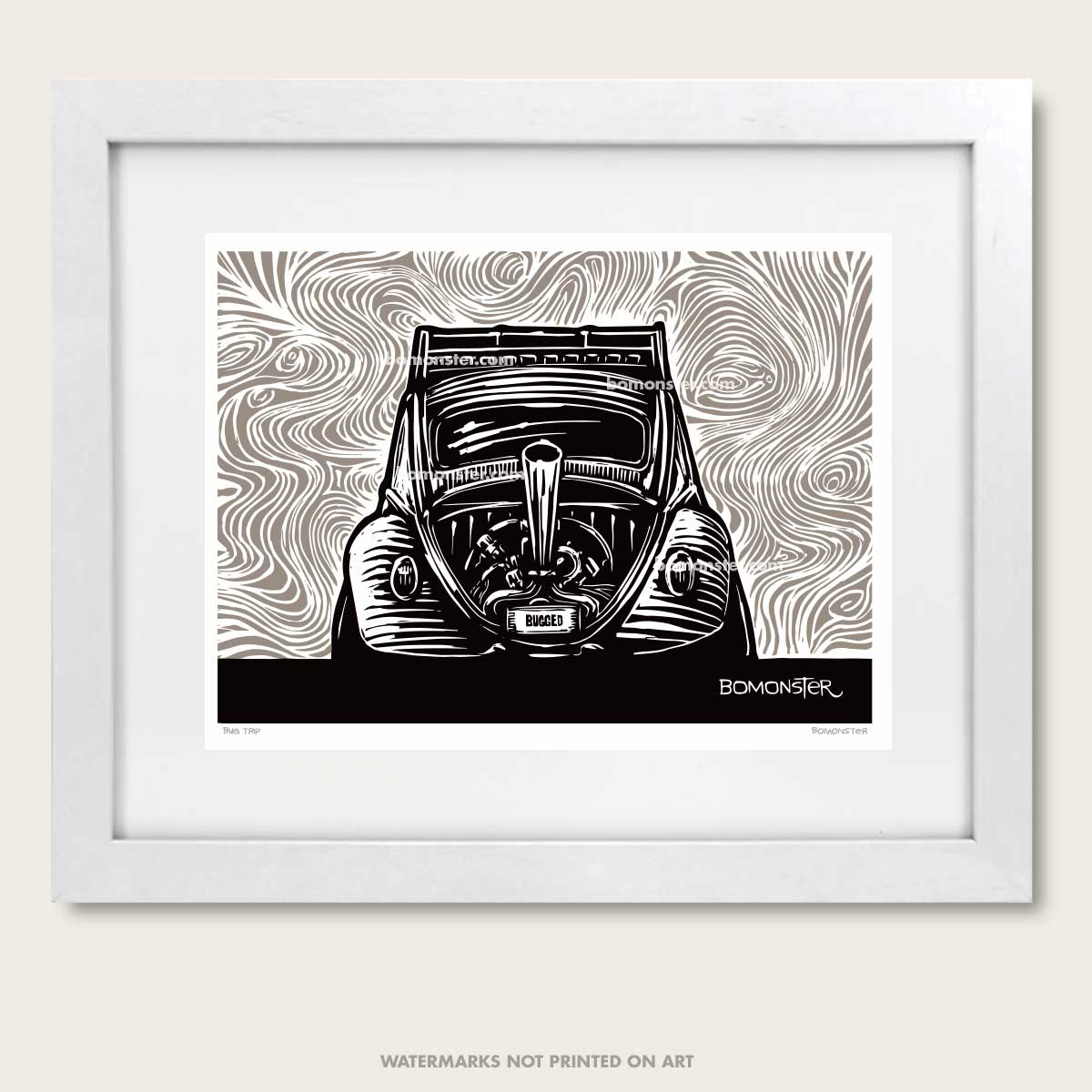 - This 8.5x11” litho print features the back of a vintage hopped up VW bug
