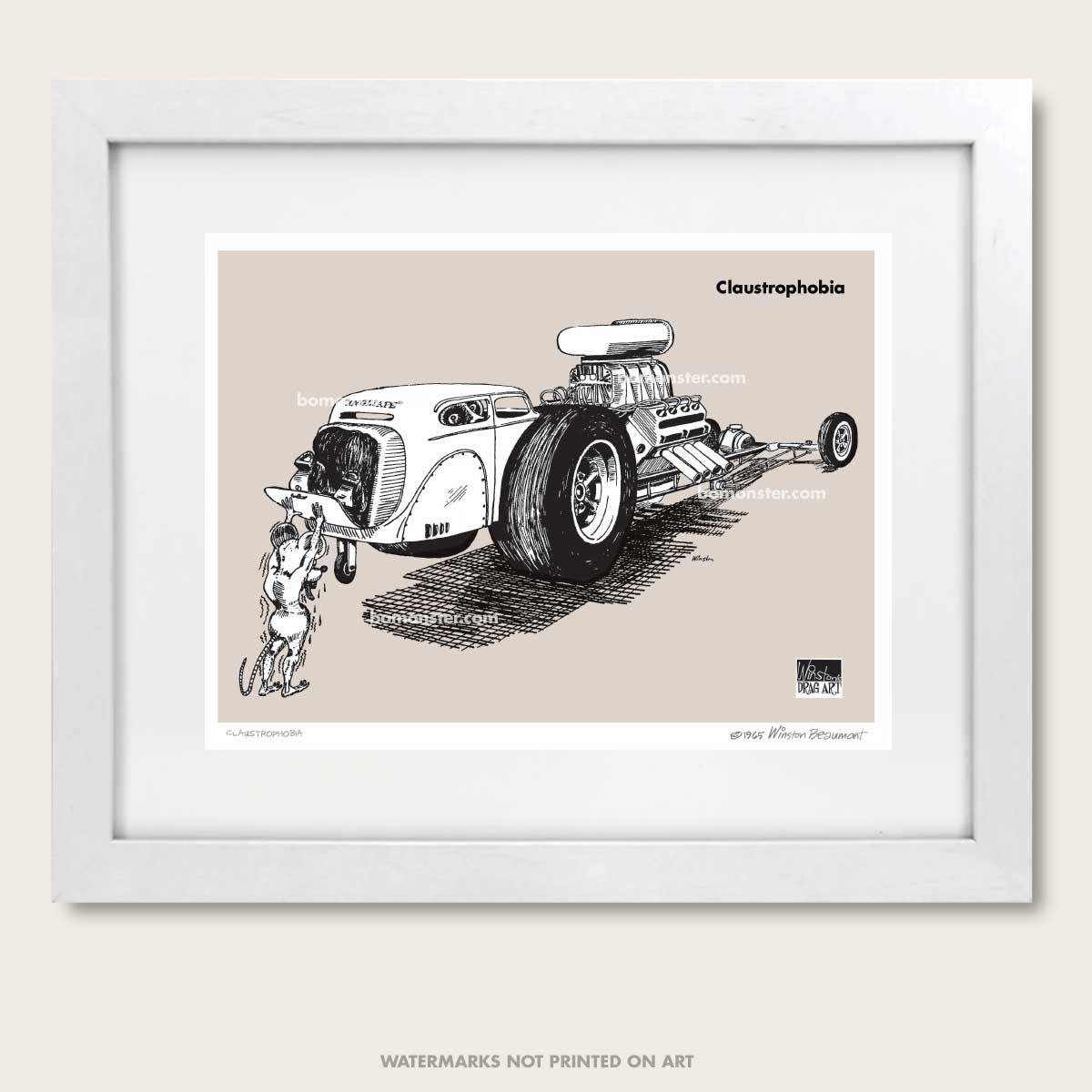 - Check out this 8.5x11” litho print. A sweating rat pushes a creepy looking driver into the back of a blown dragster coupe.