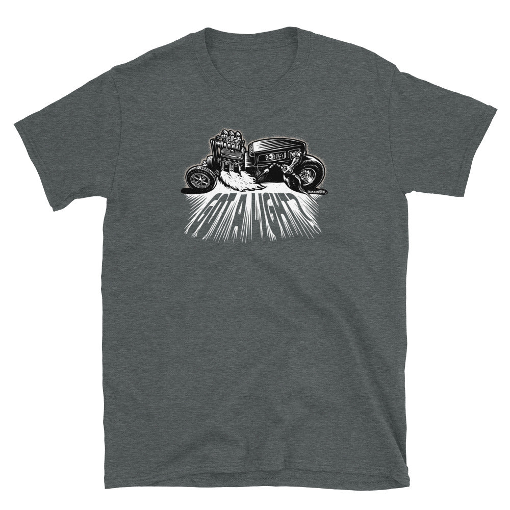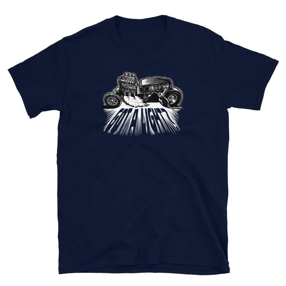 This shirt is custom made when you order it. Choose from three shirt colors – Black, Navy and Dark Heather. Production could take 2-5 days prior to shipping and will be shipped separately when ordering multiple website products.