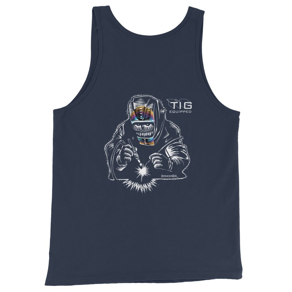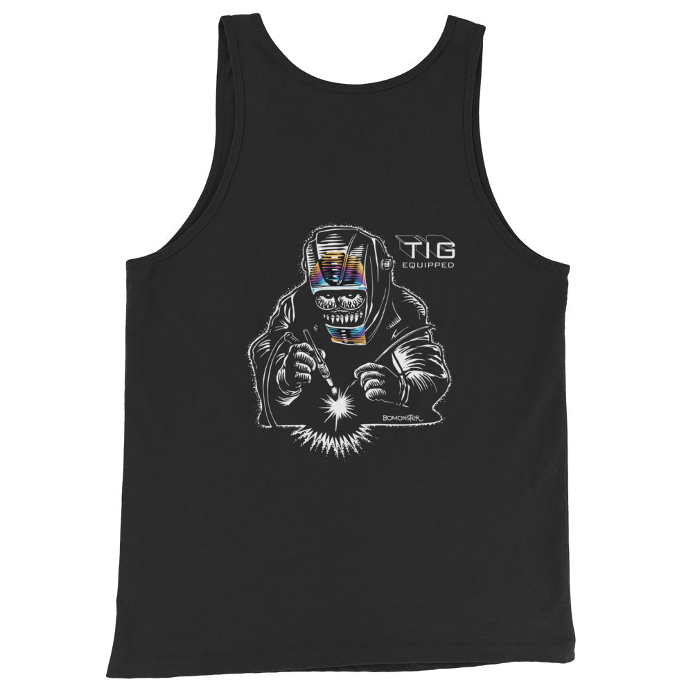 TIG welders are monsters at melting metal together. This BOMONSTER original design honors those garage monsters who are artists when working on hot rods, motorcycles and anything that breaks.