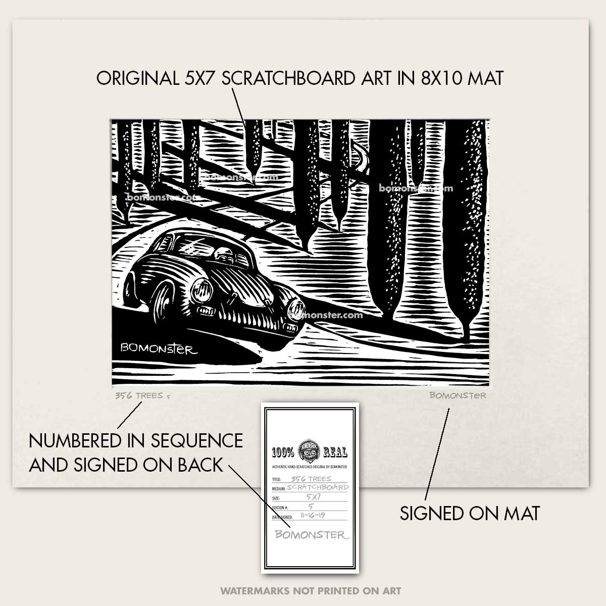 • Signed by BOMONSTER and numbered in sequence as they are finished. No two are alike.