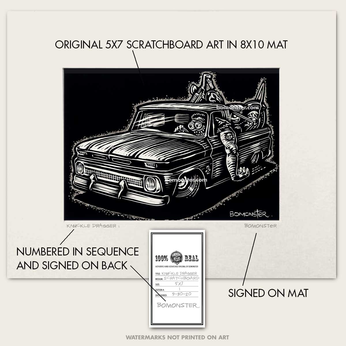 - This 5x7” original is hand-scratched on a piece of 1/8th scratchboard and comes with an 8x10 signed off-white archival mat ready to frame.