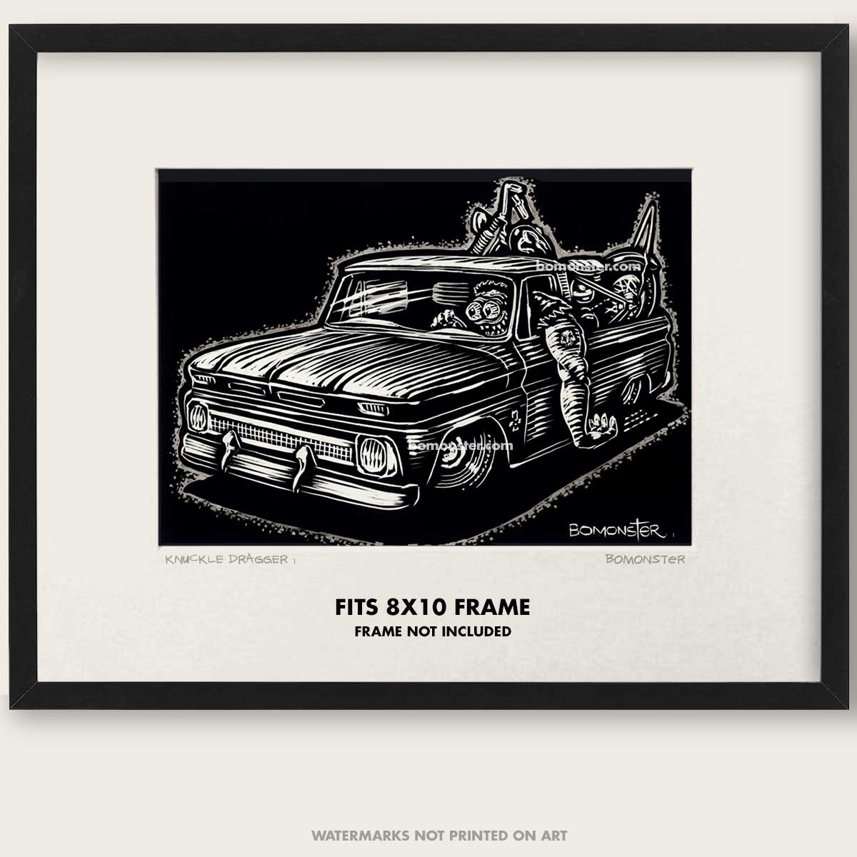 - Art features a BOMONSTER's rendition of a monster driver in a classic chevy C-10 truck.