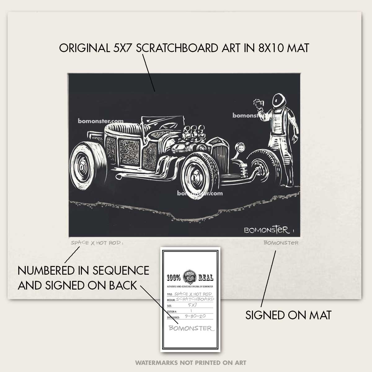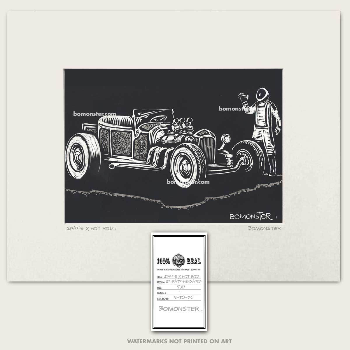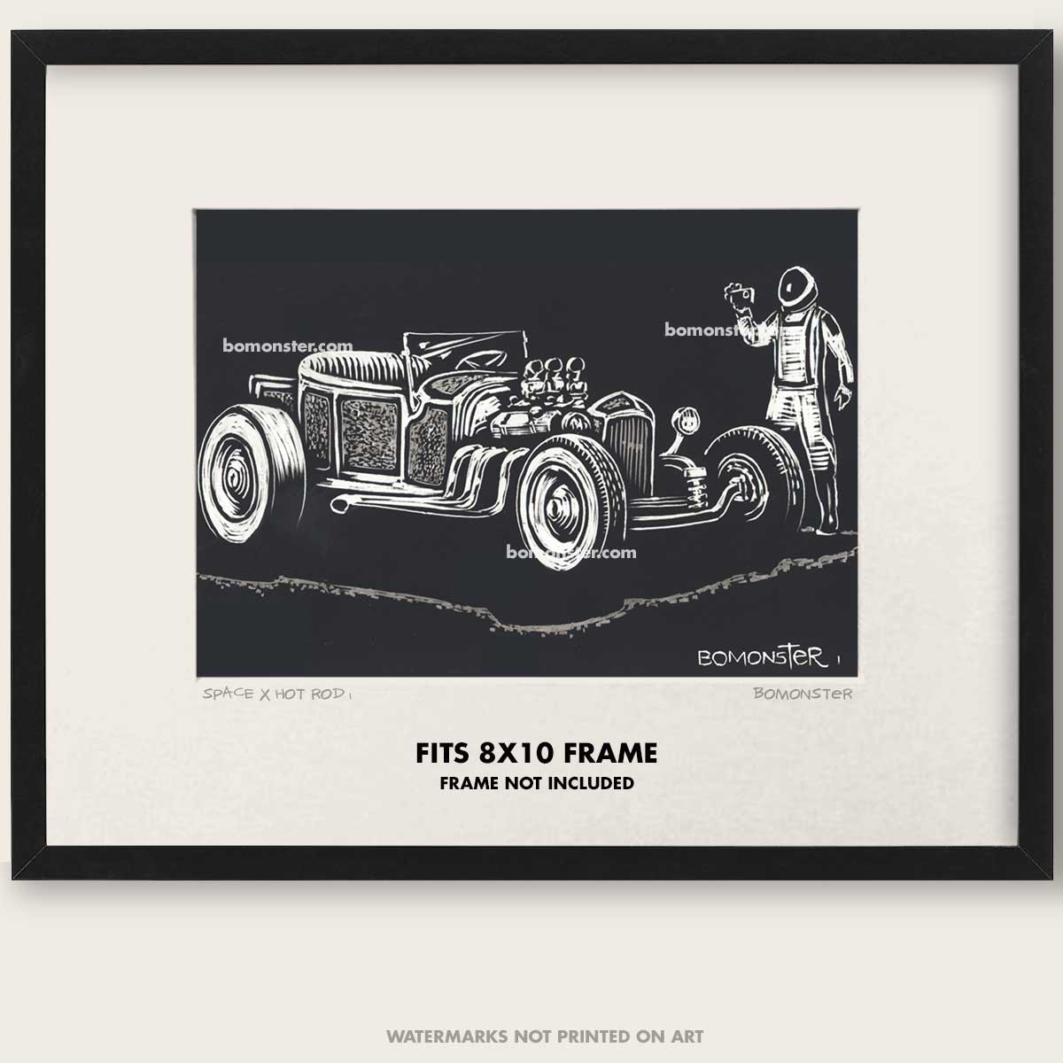 - Art features a BOMONSTER's rendition of a custom hot rod roadster seen by a SPACEX traveler.