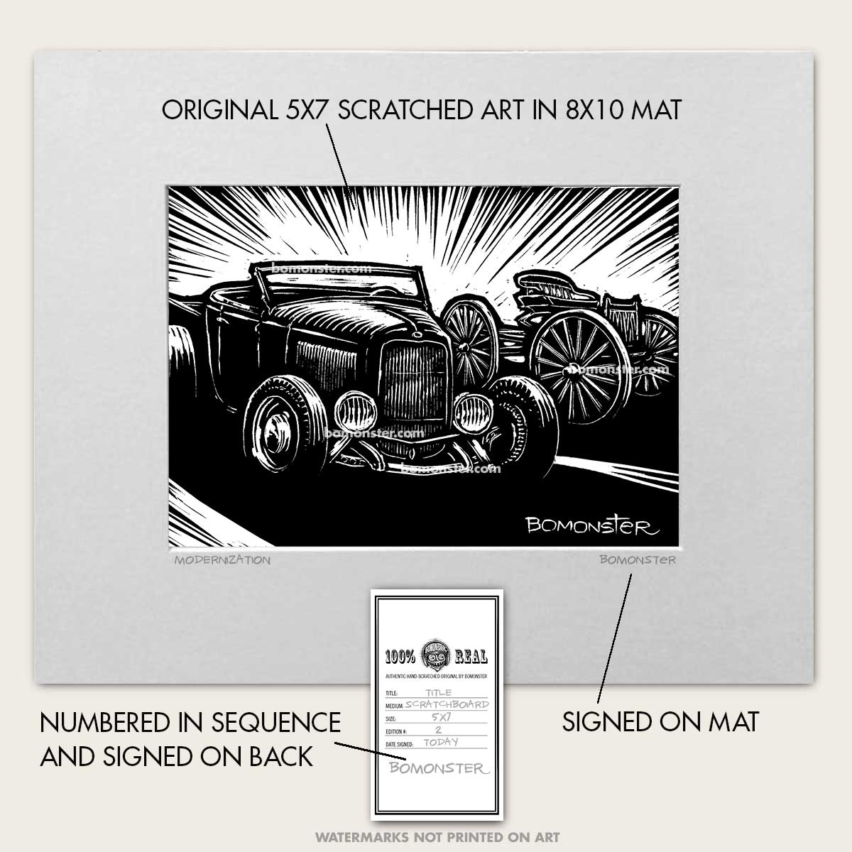 • This 5x7” original hand-scratched piece of art is affordable and comes with an 8x10 white archival mat ready to frame.